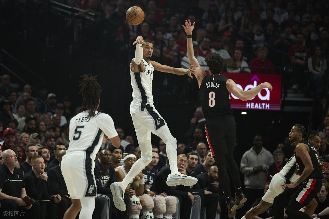 上半场比赛,开拓者这边准星十足,加上文班亚马复出急于立功,进攻端数次持球瞎打,霍勒迪在防守端确实让文班很不舒服,加上科内特次节在场时,内线的补篮和上篮连续丢了几个,也影响很大!阿夫迪亚、格兰特、霍勒迪上半场都打得很出色,阿夫迪亚13分5板3助、格兰特11分2板1助、霍勒迪9分5板3助!下半场,马刺调整打法,后卫掌控球权,持球发起进攻,文班在防守端制霸篮,站在内线把开拓者盖懵了,这个时候,卡斯尔、尚帕尼、福克斯、瓦塞尔各进一个三分,文班空接扣篮那4分,马刺彻底起势了!开拓者稳定得分点太少,阿夫迪亚下半场体能不足,突破被文班限制,霍勒迪孤掌难鸣。