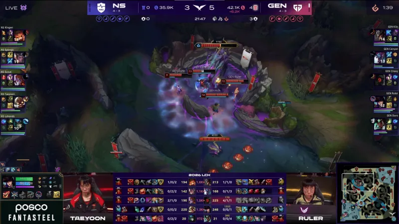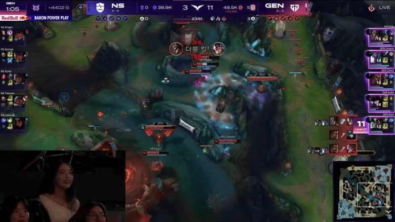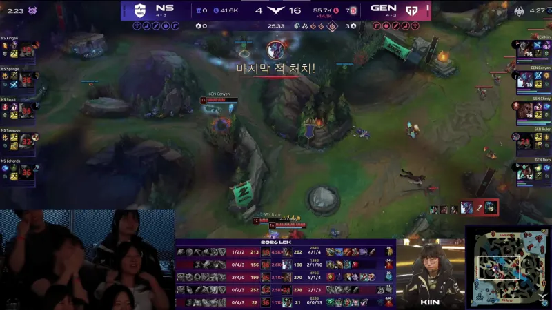 比赛第23分钟,GEN上中双人五杀帮助队伍打出0换5团灭NS,随后GEN拿下龙魂。
